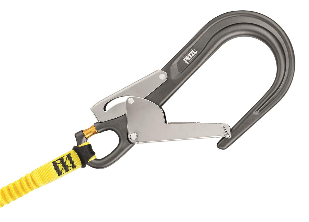 - Punto de conexión con cierre que permite instalar directamente el MGO OPEN en la punta del elemento de amarre doble tipo ABSORBICA-I, ABSORBICA-Y, JANE, PROGRESS o PROGRESS ADJUST y del elemento de amarre de sujeción tipo GRILLON. Así en caso de pérdida del elemento de amarre, puede ser reutilizado.
