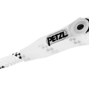 – Se utiliza en doble desde los puntos de enganche laterales del arnés cuando el usuario trabaja apoyado sobre los pies. Este tipo de conexión garantiza un mejor reparto de la carga en el cinturón del arnés. La regulación se realiza apretando la leva pivotante. - Terminales cosidos en las dos puntas con funda plástica para mantener el conector en posición y proteger la cuerda de la abrasión.