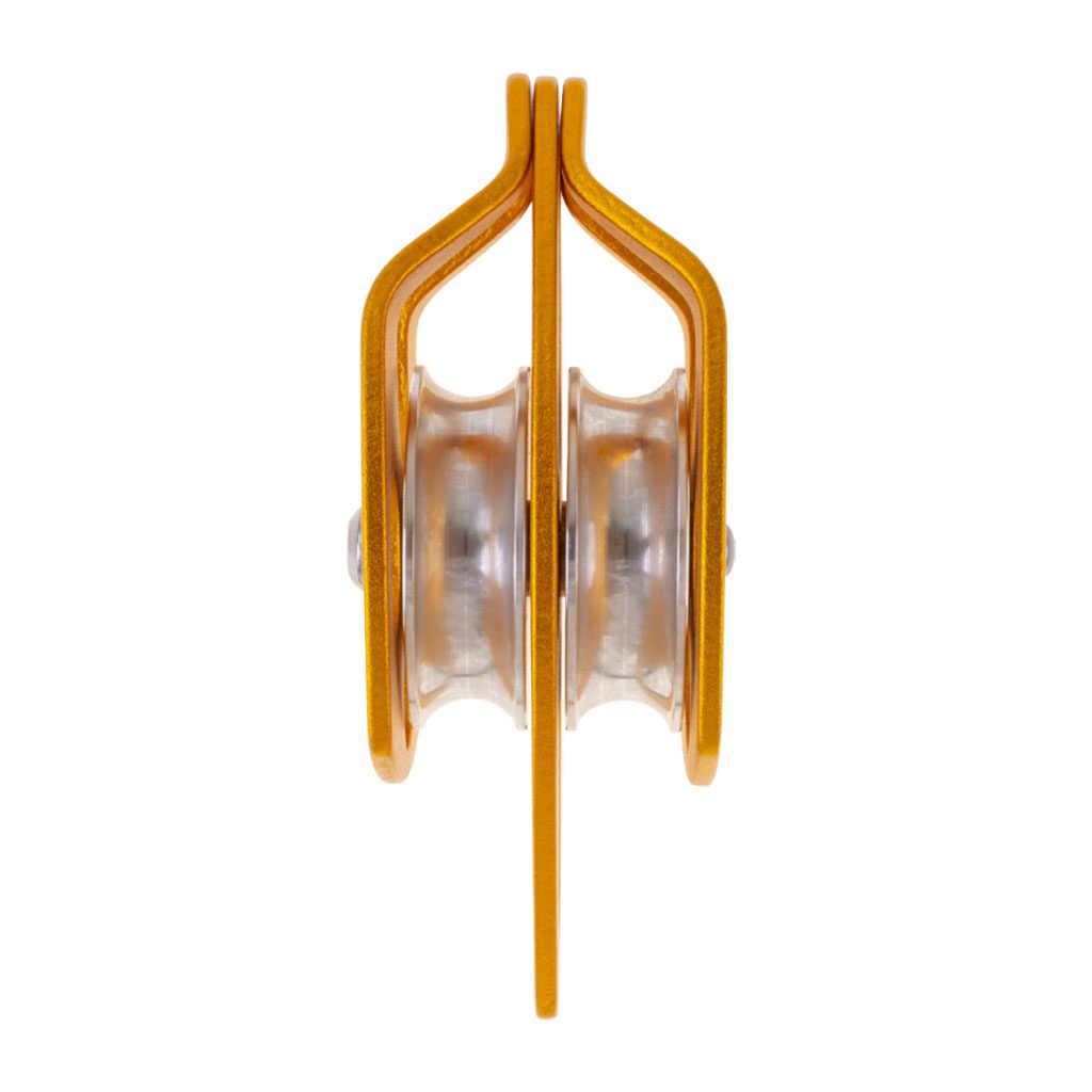 - Polea doble con placas móviles ideal para diámetros de cuerda grandes.